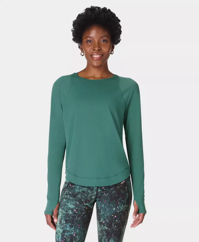 When the weather gets a bit chilly, the Breathe Easy Running Long Sleeve Top is a must-have. It’s a long-sleeved version of their bestselling running tee, made from lightweight, sweat-wicking fabric with a touch of stretch. The body-skimming fit, crew neck and long sleeves offer a sleek look. Breathable mesh panels at the back provide extra ventilation, keeping you cool even when you’re working up a sweat. It also features thumbholes—perfect for keeping your hands warm on those brisk morning runs. Plus, the reflective logo detail is a thoughtful touch for early morning or late evening workouts.